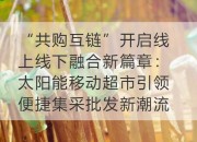 隨著數(shù)字化浪潮的深入推進(jìn),線上線下相結(jié)合的商業(yè)模式正成為推動經(jīng)濟(jì)發(fā)展的新引擎。近日,一項(xiàng)名為“共購互鏈”的供應(yīng)鏈系統(tǒng)正式亮相,該系統(tǒng)以太陽能移動超市為線下實(shí)體,結(jié)合線上生活剛需品供應(yīng)商或生產(chǎn)商,打造了一個方便、快捷的集采和批發(fā)商品平臺,為市場帶來了全新的商業(yè)體驗(yàn)。