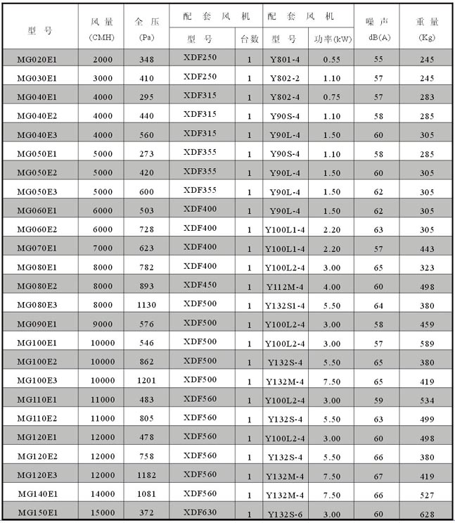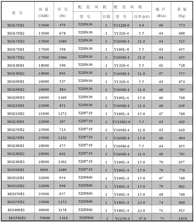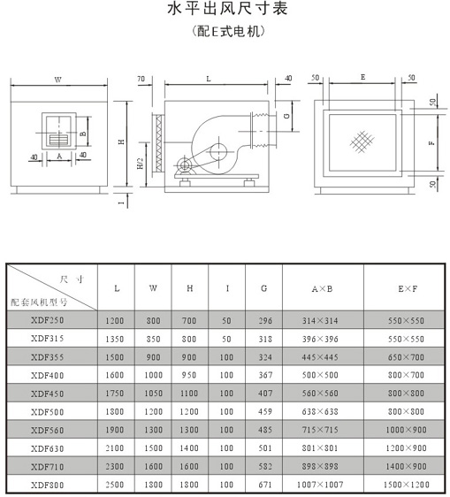 變風(fēng)量風(fēng)機(jī)箱(變風(fēng)量機(jī)箱)技術(shù)性參數(shù)(E式為皮帶轉(zhuǎn)動(dòng))