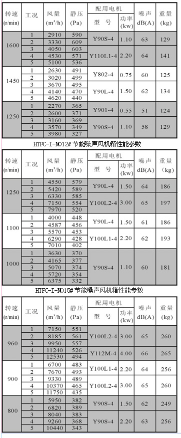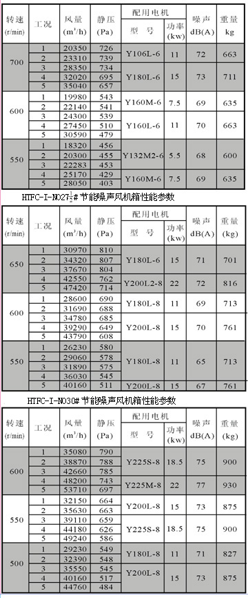 HTFC-I-NO25#節(jié)能低噪音風(fēng)機(jī)箱性能參數(shù)