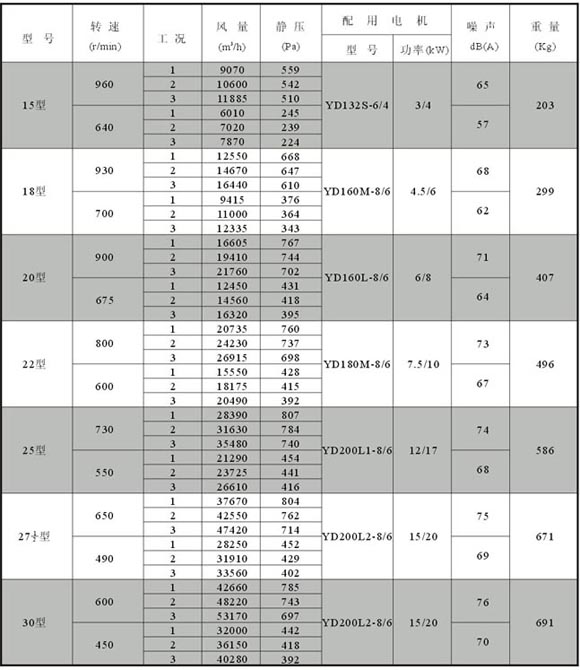HTFC-II-no15-30#節(jié)能低噪聲風(fēng)相箱性能參數(shù)(雙速)
