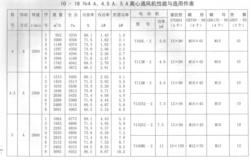 10-18、9-18、9-16型高壓離心通風(fēng)機主要用于中小型化肥廠生產(chǎn)配套,亦可用于化鐵爐、燃燒爐、正壓燃油爐的高壓強制通風(fēng)及物料、糧食輸送或輸送空氣及無腐蝕、不自燃、不易爆、不易揮發(fā)、不含粘性物質(zhì)之氣體。介質(zhì)溫度一般不超過50℃,最高不超過80℃,介質(zhì)中所含塵土及硬質(zhì)顆粒物不大于150mg/m3。
