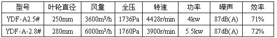 規(guī) 格: 誘導通風機含YDF-A型及YDF-B型,葉輪直徑250、280