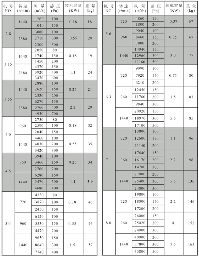 規(guī) 格: 風(fēng)量:1380~220000 m3/h,風(fēng)壓150~1000Pa。