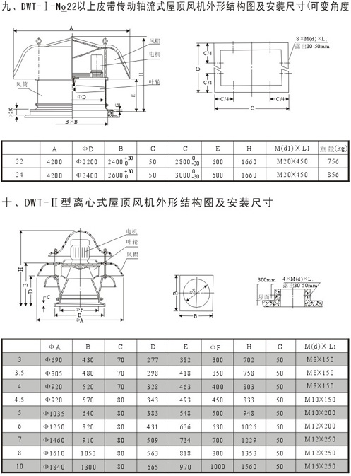 | DWT-II型離心式屋頂通風(fēng)機(jī)性能參數(shù)表 |