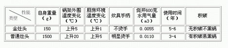 節(jié)能灶頭與普通灶頭使用性能對比表