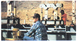 在希臘的工作實例:工作臺上裝配有長達25米的管道,用6個RC-2514液壓缸升高工作臺。