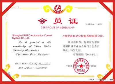 2010年1月5日熱烈祝賀羅普公司成為中國通用機(jī)械協(xié)會閥門分會會員!