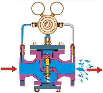 先導(dǎo)活塞式氣體減壓閥系列屬于先導(dǎo)活塞式減壓閥。由主閥和導(dǎo)閥兩部分組成。主閥重要由閥座、主閥盤、活塞、彈簧等零件組成。導(dǎo)閥重要由閥座、閥瓣、膜片、彈簧、調(diào)節(jié)彈簧等零件組成。通過調(diào)節(jié)調(diào)節(jié)彈簧壓力設(shè)定出口壓力、利用膜片傳感出口壓力變更,通過導(dǎo)閥啟閉驅(qū)動(dòng)活塞調(diào)節(jié)主閥節(jié)流部位過流面積的大小,實(shí)現(xiàn)減壓穩(wěn)壓功效。