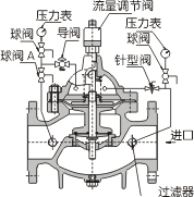 當(dāng)閥門從進(jìn)口端給水時,水流過針閥進(jìn)進(jìn)主閥把持室,并經(jīng)過導(dǎo)閥、球閥流出主閥把持室到出口,此時主閥處于全開或浮動狀態(tài)。調(diào)定主閥上部的流量調(diào)節(jié)閥,可為主閥設(shè)定必定開度。調(diào)節(jié)針閥開度和調(diào)節(jié)導(dǎo)閥彈簧壓力,即可使主閥開度保持在設(shè)定開度,并在壓力變更時導(dǎo)閥進(jìn)行主動調(diào)節(jié),保持流量不變。