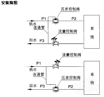 現(xiàn)以安裝在回水管道上的ZYC型自力式壓差把持閥為例闡明工作原理。當(dāng)供水壓力p1增大或減小時(shí),信號由連接收傳如膜片上腔,帶動(dòng)閥芯下移,使閥座的流通面積減小或增大。P2-P3也增大或減小,直到P1-P2保持原值恒定。當(dāng)回水壓力P3增大或減小的瞬間同閥座流向出口的流速下降或升高,膜片下壓力P2也在這個(gè)瞬間增高或下降,帶動(dòng)閥芯上移或下移,知道膜片的受力重新平衡,P2恢復(fù)原值,P1-P2保護(hù)原值恒定,從而保證了被控系統(tǒng)的供回水間壓差基礎(chǔ)不變。