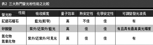 圖1 利用發(fā)光二極管產(chǎn)生白光之原理與優(yōu)劣點(diǎn)