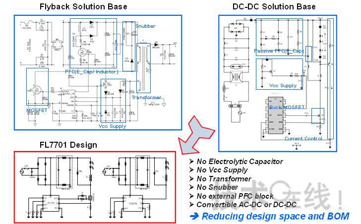 圖23 飛兆FL7701的設計空間與目前常用方案的比較