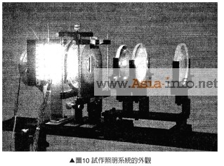 具的特性評(píng)鑒 研究職員為進(jìn)行各種條件的實(shí)驗(yàn),根據(jù)以上設(shè)計(jì)試作大型照明燈具,接著在光學(xué)平臺(tái)(Bench)上進(jìn)行配光量測(cè)、照度不均、色不均進(jìn)行評(píng)量。圖10是試作照明系統(tǒng)的實(shí)際外觀。