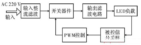 圖1 PWM 方式開關電路設計的LED 驅動電路框圖