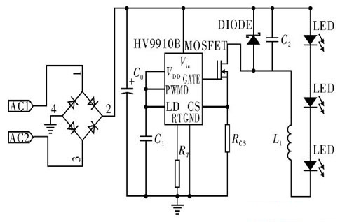 圖2 基于芯片HV9910B 控制的LED 驅動電路