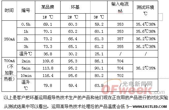 LED 為Osram,鋁基板環(huán)基的2pcs,某品牌的1pcs,現(xiàn)進(jìn)行溫度對照測試