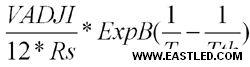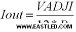 其中:VADJI為調(diào)光引腳ADJI引腳的電壓,單位V,調(diào)光范疇0.3V~1.2V,懸空時(shí)電壓為1.2V;