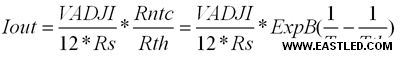 當(dāng)Rntc>Rth時(shí),溫度補(bǔ)償未啟動(dòng),輸出電流保持不變,大小由設(shè)置電流電阻Rs和ADJI引腳電壓決定: