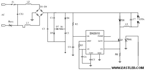 圖5 SN3910驅(qū)動(dòng)LED典范利用圖