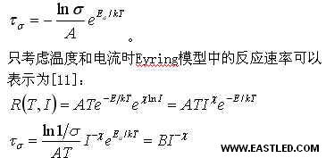 對通過必定外加應力情況下老化,得到了不同應力下功率型發(fā)光二極管的壽命,利用反應速率模型推斷出發(fā)光二極管的壽命隨溫度或電流的變更,對于猜測不同種類和質量的LED的壽命是一個較為可靠的參考。