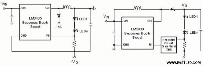 由于Boost和Buck-boost調(diào)節(jié)器的高度復(fù)雜性及其外圍電路、低效(特別是Buck-boost)和把持拓?fù)涞倪x擇不足,致使它們都不是轉(zhuǎn)換LED驅(qū)動(dòng)的首選。但是它們都是LED越來越多的照明利用必不可少的。某些系統(tǒng)結(jié)構(gòu)可以用buck或者甚至是線性以調(diào)節(jié)器為基礎(chǔ)的LED驅(qū)動(dòng)來調(diào)換。比如類似于街燈的大型光源需要一百甚至更多的1W+LED。一般來說,針對通用照明的LED從低功耗走向高功耗,并且在其中間舞臺(tái),比如汽車前燈和小型光部件,boost和buck-boost調(diào)節(jié)器代表了常電流驅(qū)動(dòng)的最佳選擇。