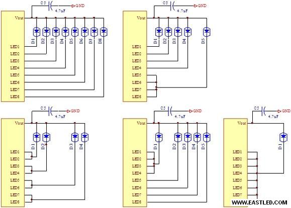 由于每個電流輸出的時序與電流大小都可以獨立把持調(diào)劑,因此我們就能夠應用白光或帶有色彩的LED,并利用不同的發(fā)光模式來實現(xiàn)豐富多彩的裝飾或唆使,部分具備音頻輸進的電路還能夠讓彩色LED與內(nèi)部嵌進的MP3或和弦鈴聲的不同頻帶雷同步。