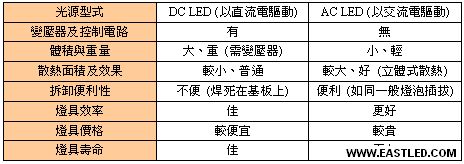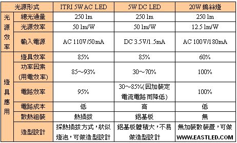 表二 DC LED與ITRI AC LED照明利用比擬表