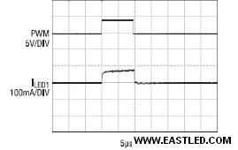 圖4:圖3所示電路供給的1000:1 PWM調(diào)光波形
