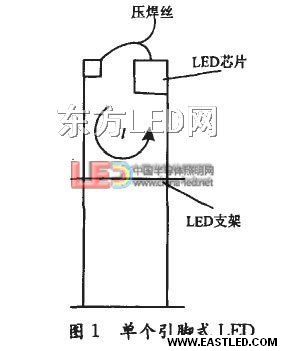 在LED引腳式封裝過程中,每個(gè)LED芯片是被固定在引線支架上的,LED芯片通過壓焊金絲(鋁絲)與引線支架形成了閉合回路,如圖1。若疏忽引線支架電阻,LED支架回路光電流即是芯片光生電流IL??梢?,當(dāng)p-n結(jié)材料和摻雜濃度必定時(shí),支架回路光電流與光照強(qiáng)度I成正比。