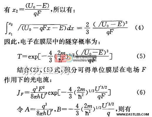 ,x指向?yàn)樾酒姌O表面到壓焊點(diǎn),為膜層中z方向任意點(diǎn)的勢壘,E是垂直芯片電極表面速度為vx電子的能量。