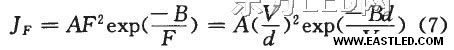 LED芯片受到腐化因素影響或沾染油污時(shí),在芯片電極表面天生一層非金屬膜,產(chǎn)生封裝缺點(diǎn)[11]。電極表面存在非金屬膜層的LED芯片壓焊工序后,焊接處形成金屬一介質(zhì)-金屬結(jié)構(gòu),也稱為隧道結(jié)。當(dāng)必定強(qiáng)度的光照射在LED芯片上,若LED芯片失效,支架回路無光電流流過若非金屬膜層足夠厚,只有極少數(shù)電子可以隧穿膜層勢壘,LED支架回路也無光電流流過;若非金屬膜層較薄,由于LED芯片光生電流在隧道結(jié)兩側(cè)形成電場,電子重要以場致發(fā)射的方法隧穿膜層,流過單位面積膜層的電流可表現(xiàn)為[12]。