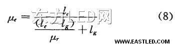式中,μe磁芯的有效磁導(dǎo)率,脅為磁芯的相對磁導(dǎo)率,μr為磁芯的有效磁路長度,名為非閉合氣隙長度。