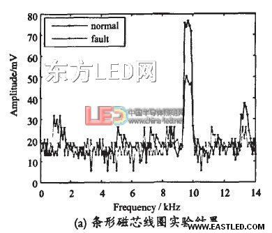 ①焊接質(zhì)量合格的LED,實(shí)驗(yàn)檢測值與理論盤算值相吻合。圖5(a)為應(yīng)用條形線圈磁芯的實(shí)驗(yàn)成果,封裝工藝中焊接質(zhì)量合格的LED,信號(hào)檢測端產(chǎn)生的光鼓勵(lì)信號(hào)經(jīng)放大、濾波、峰值檢波后幅值約為60mV。選12mil黃色LED芯片進(jìn)行理論值盤算,芯片面積A=0.3mm×0.3mm,取β=0.5當(dāng)單位時(shí)間內(nèi)單位面積被半導(dǎo)體材料接收的均勻光強(qiáng)(以光子數(shù)計(jì))為5.45×1021個(gè)/m2s時(shí),由式(1)可盤算出光生電流約為42μA。由畢奧-薩伐爾定理、疊加定理及法拉第電磁感應(yīng)定律,可求得12mil黃色LED芯片在信號(hào)檢測端感生電動(dòng)勢幅值約為63mV,往除實(shí)驗(yàn)誤差和盤算誤差,理論值和實(shí)驗(yàn)值較好地吻合。