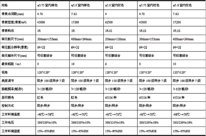 室內(nèi)單色LED顯示屏規(guī)格:Φ3.0、Φ3.75、Φ4.8、Φ5.0。